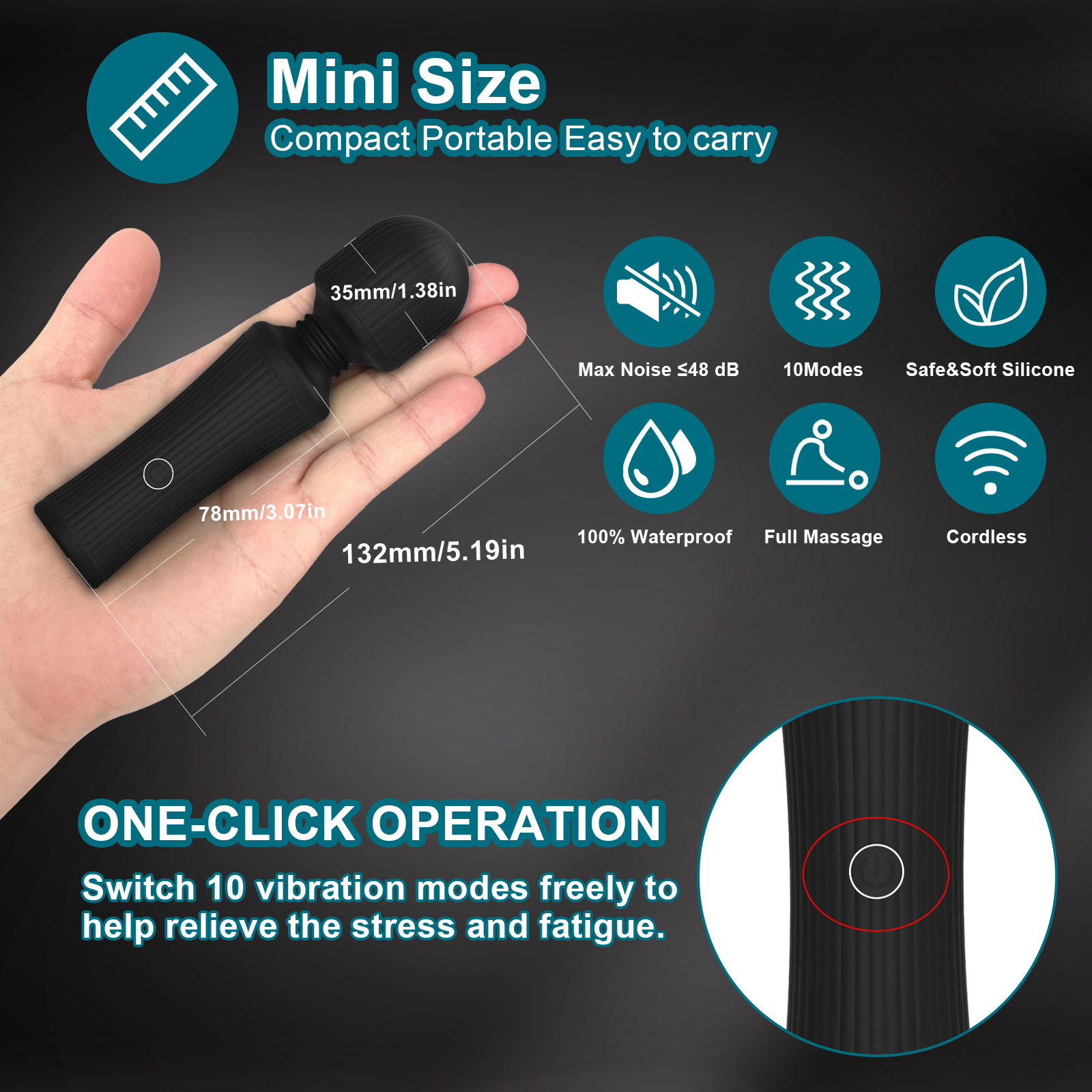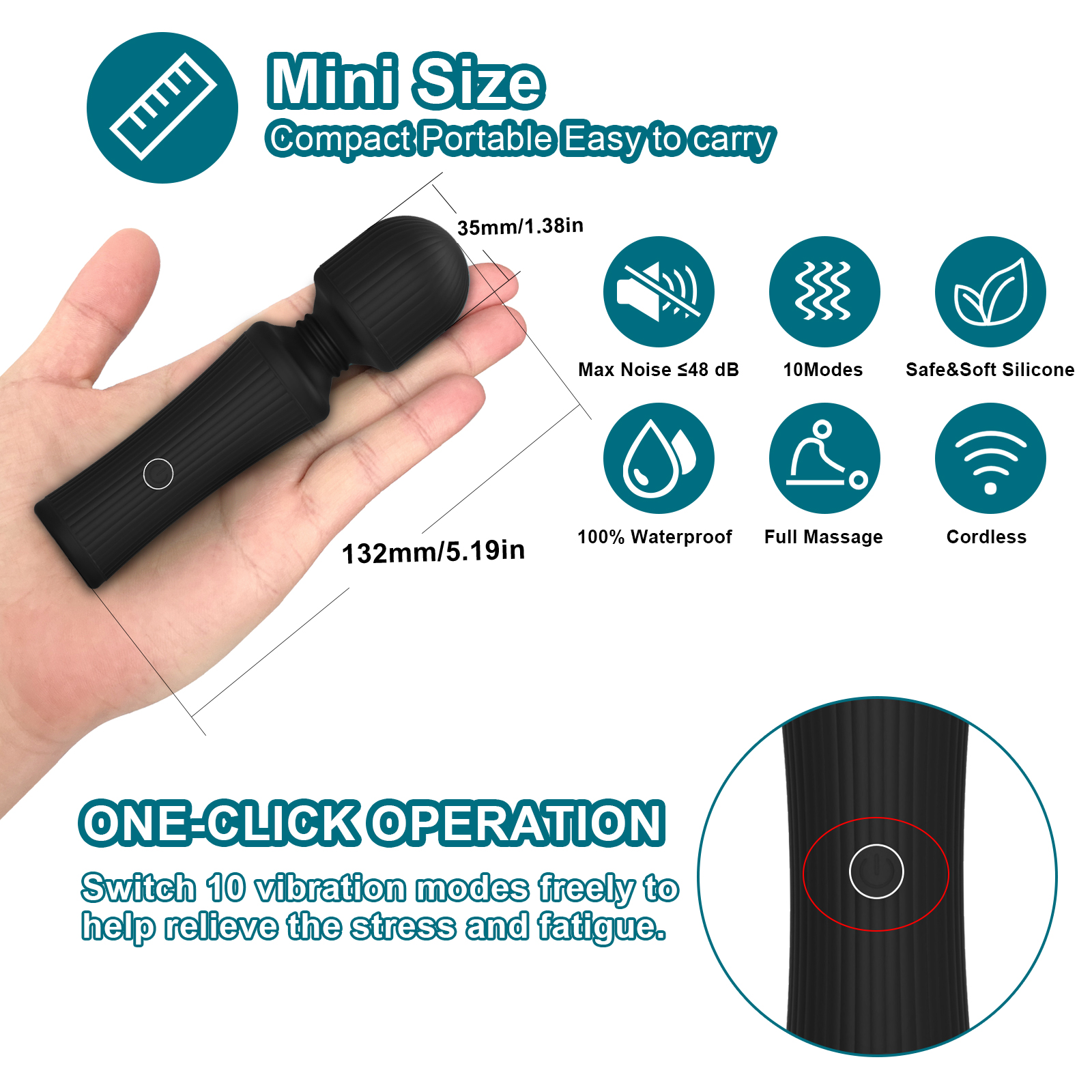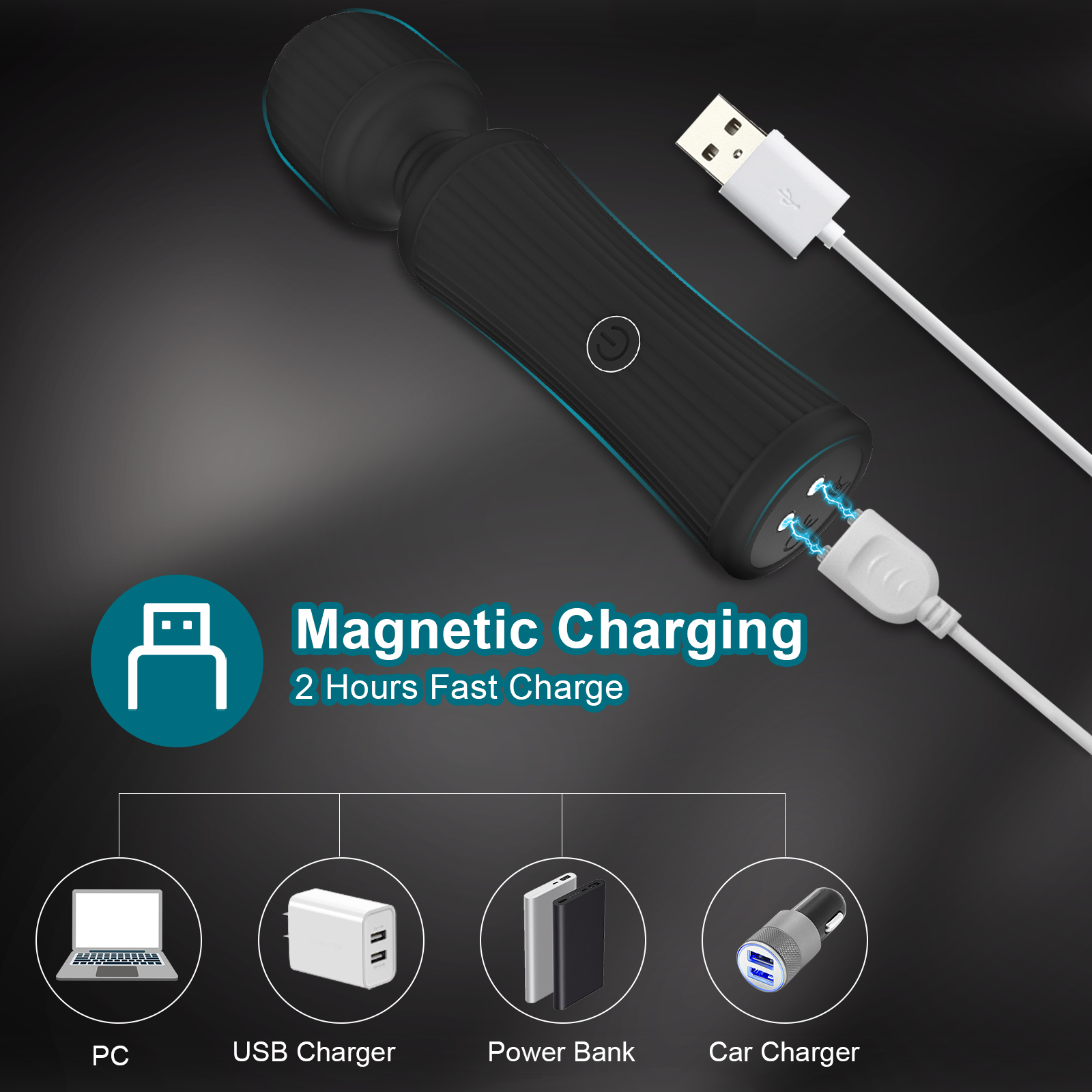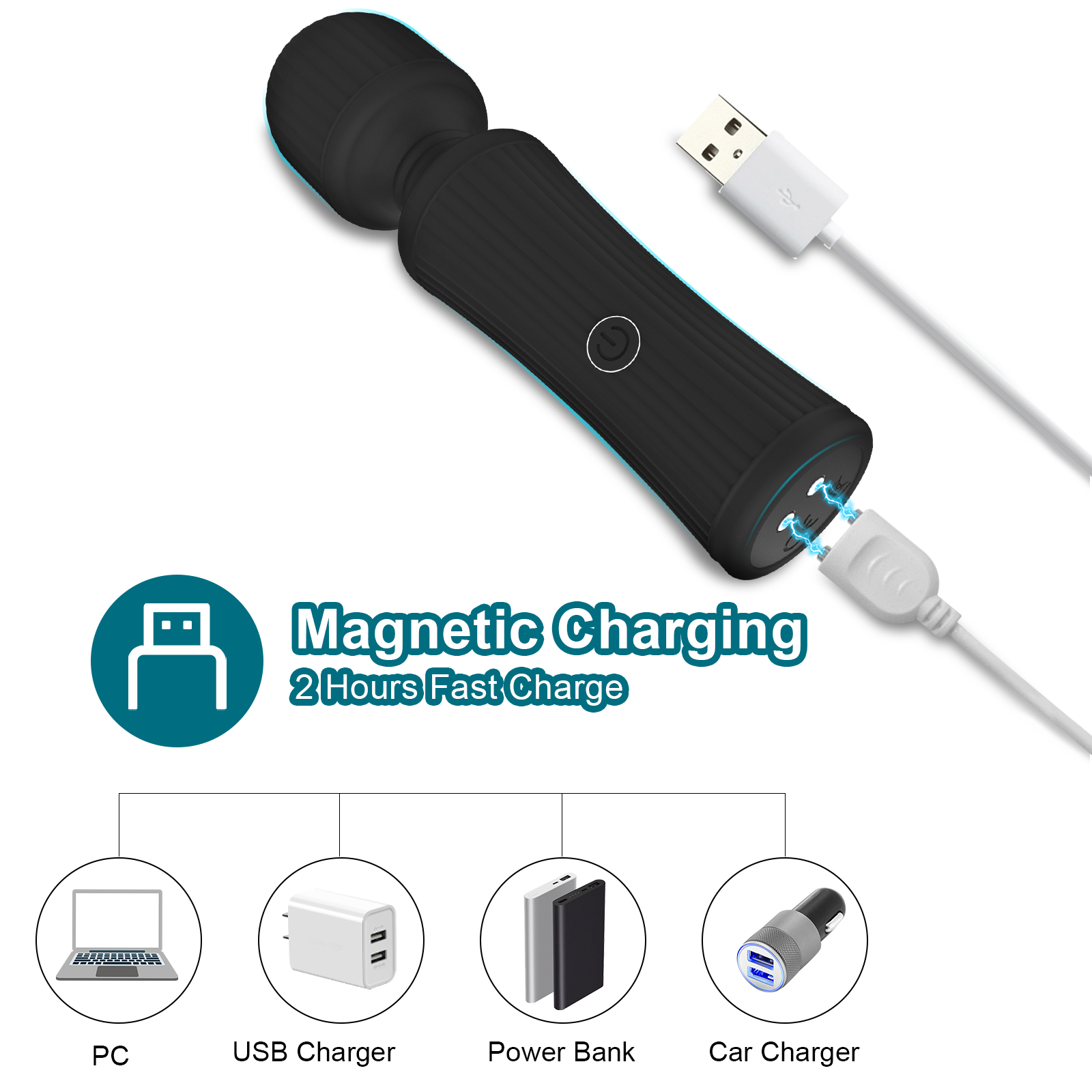 Wbudowany akumulator urządzenia można ładować za pomocą magnetycznego kabla USB, co jest bardzo wygodne i praktyczne. Dzięki temu, że masażer ma mały rozmiar można go zabrać ze sobą wszędzie – w podróż, na wakacje czy do pracy.