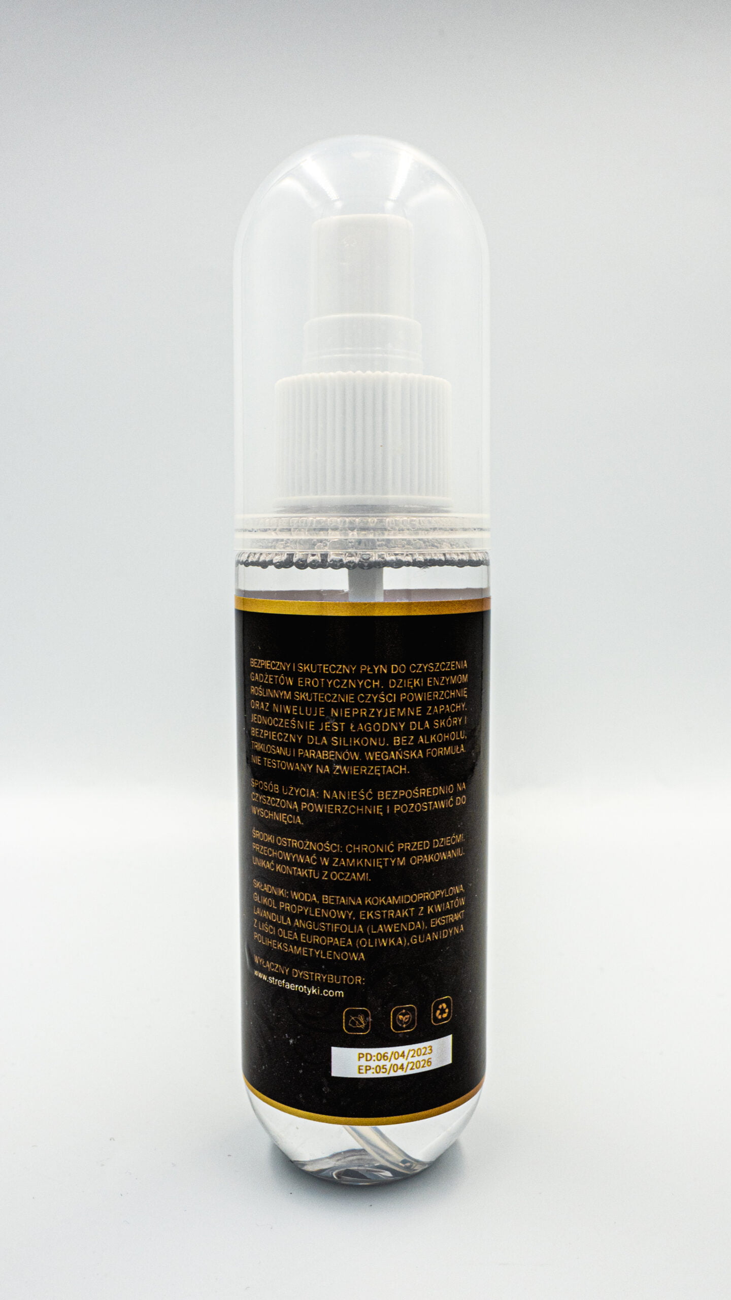 Korzystając z naszego płynu, po każdej upojnej chwili masz pewność, że Twoje zabawki są właściwie wyczyszczone. Skuteczna — i co ważne — naturalna receptura zastosowana do jego produkcji sprawia, że świetnie sprawdza się on w kontakcie z zabawkami erotycznymi wykonanymi z różnych materiałów — to z kolei daje Ci gwarancję, że możesz bezpiecznie czyścić każdy gadżet, czy to silikonowy, lateksowy, czy też wykonany z PVC.